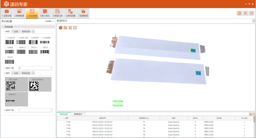 2、动力电池表面非光滑纹路,对比度差,需要读码器具备很强的图像处理能力,R6000系列智能读码器读码效果显而易见。